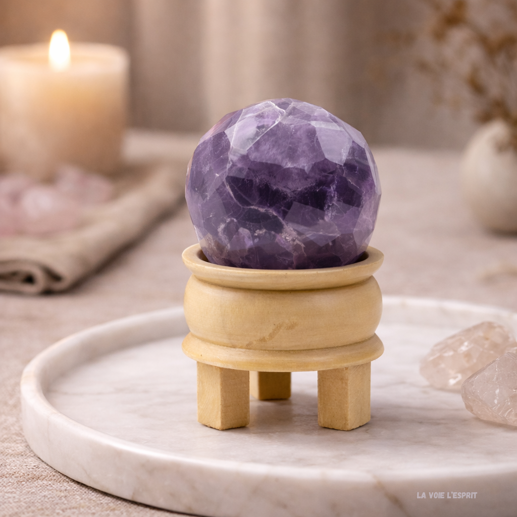 Boule de guérison Améthyste facettée – Harmonie & Sérénité